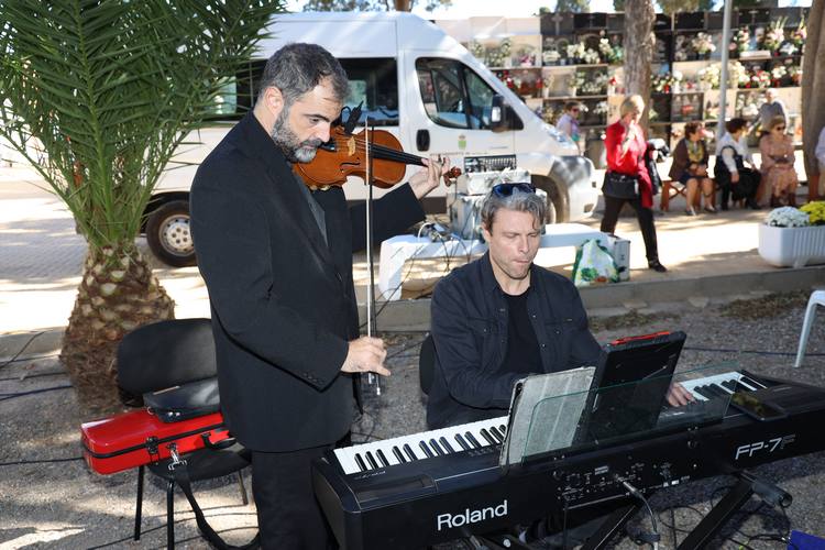 El Cementerio Municipal de El Ejido ha acogido durante la mañana de este miércoles, 1 de noviembre, un solemne concierto de música clásica a cargo de la Asociación LIVE Music, quienes han interpretado diversos temas de música sacra mediante un dúo formado por violín y piano, con motivo del Día de Todos los Santos.