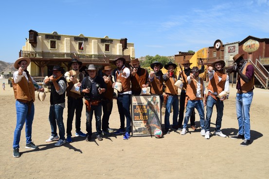 En el 65 rodó ‘La muerte tenía un precio’ y en el 66 llegó la elogiada “El bueno, el feo y el malo”. Además de esas tres también utilizó escenarios almerienses en dos cintas más, “Hasta que llegó su hora” (1968) y “¡Agáchate, maldito!” (1971). Llenas de nombres míticos del cine, los Clint Eastwood, Gian Maria Volonté, Charles Bronson, Lee Van Cleef, James Coburn, Ely Wallach o Henry Fonda fueron esta vez los hombres de la primera plantilla de Unicaja Almería y su cuerpo técnico, con Piero Molducci como sheriff o en el papel de su propio compatriota Leone. Ataviados con el vestuario cedido por la Armería Leonardo, cuya ayuda ha sido fundamental, pistoleros ‘de talla’ hicieron suyo el Mini Hollywood.