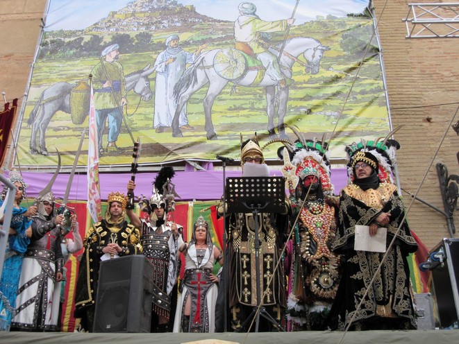 Venegas. Y a su término, tuvo lugar el Gran Desfile de Moros y Cristianos, propiamente dicho con más de cuatrocientos cincuenta figurante de a pié y a caballo. Todos ellos liderados por el Rey Fernando el Católico, Rodrigo Ponce de León y Núñez, Marqués de Cádiz y el caudillo musulmán Cidi Yahya Alnayar y Alcaide de Vera. Que desde la puerta de Abajo, en la Plaza del Sol y hasta su regreso a la Plaza Mayor, el desfile transcurrió por la calle Mayor salida por la puerta de Arriba a la Plaza Fernando V, Alfredo Almunia, Isabel la Católica, Reconquista, Del Mar, Juan Anglada y vuelta a la Plaza Mayor.