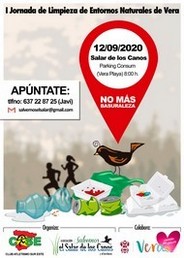 El próximo sábado 12 de septiembre de 2020 en el Salar de los Canos de Vera, se llevará a cabo la “I Jornada de Limpieza de Entornos Naturales de Vera: no más basuraleza”, organizada por el Club de Atletismo Sureste y la Asociación Salvemos el Salar de los Canos y el territorio, con la colaboración del Ayuntamiento de Vera.
