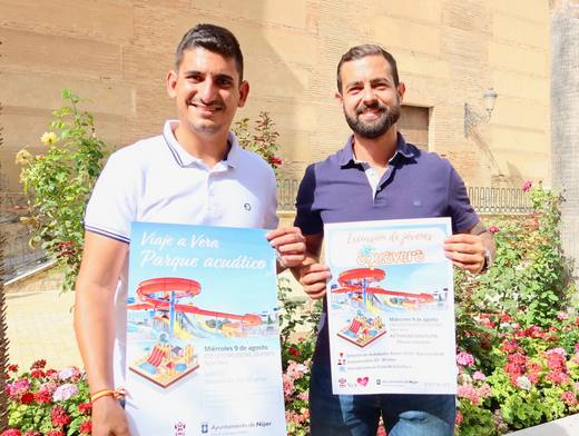 Los responsables de las áreas de Juventud de los ayuntamientos de Vera, Antonio Soler y Níjar, Rafael Nieto, han presentado el encuentro juvenil que reunirá el próximo 9 de agosto en el parque acuático AQUAVERA a más de un centenar de jóvenes de entre 14 y 30 años para.