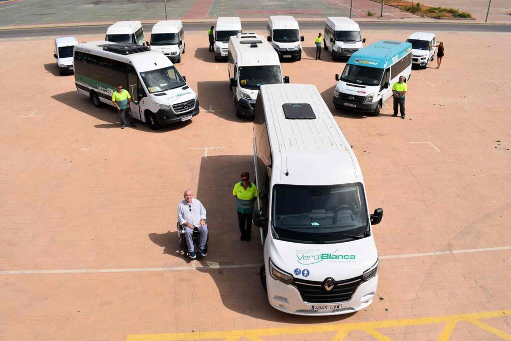 Más servicio, mayor comodidad y tecnología avanzada. La flota de vehículos adaptados de la Asociación de Personas con Discapacidad Verdiblanca no solo no deja de crecer sino que, además crece adaptándose a los nuevos requisitos del transporte público y, a la vez, mejorando el confort de las personas que, día a día, hacen servicio de ellos. La organización ha presentado esta mañana un nuevo microbús que viene a sumarse a una flota que alcanza ya los 16 vehículos, cuatro microbuses y doce furgonetas, que dan servicio a un total de 80 pasajeros diarios y con traslados a siete localidades de la provincia, como Tabernas, Roquetas de Mar, Campohermoso, Ruescas, Gádor, Rioja y la capital con el empleo directo de media docena de conductores.