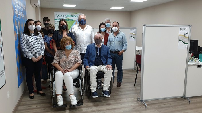 El delegado territorial de Empleo, Formación, Trabajo Autónomo, Transformación Económica, Industria, Conocimiento y Universidades de la Junta de Andalucía, Emilio Ortiz López, ha podido comprobar este lunes in situ la eficacia de la nueva unidad de la red Andalucía Orienta que acaba de poner en marcha en la provincia de Almería la Asociación de Personas con Discapacidad Verdiblanca en su sede. El presidente de la entidad, Antonio Sánchez de Amo, le ha presentado a los nuevos técnicos de orientación laboral y acompañamiento a la inserción de personas con diversidad funcional, a la vez que le ha mostrado las flamantes instalaciones habilitadas para tal fin.