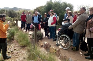 ‘Naturaleza para todos’, un programa de la Consejería de Medio Ambiente y Ordenación del Territorio de la Junta de Andalucía, ha sido el marco de esta visita al Parque Natural Cabo de Gata-Níjar que ha permitido a sus asistentes, entre otras cosas, identificar diferencias entre algunas plantas por su tamaño, tipo de hojas, flores, olor y forma. También estimular sus sentidos con la realización de un taller de sales de baño con especies vegetales autóctonas, observando la gran diversidad de plantas y conociendo algunas adaptaciones de éstas a los entornos semiáridos. La visita finalizó con una comida en Los Albaricoques para completar la excursión con una ruta por escenarios del western, donde se rodaron escenas de películas tan conocidas como ‘La muerte tenía un precio’ o ‘El bueno, el feo y el malo’.