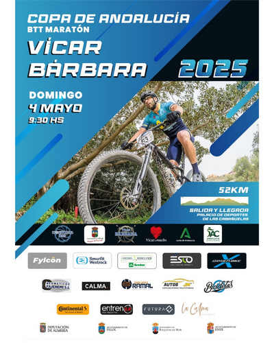 Vícar Bárbara no solo es una retante prueba, sino que es, además, puntuable para el Desafío Ambassador, una promoción de la Škoda Titan Desert Almería, en colaboración con la Junta de Andalucía y la Federación Andaluza de Ciclismo, por la que hasta doce ciclistas aficionados andaluces podrán obtener una inscripción gratuita para la carrera de ‘mountainbike’ almeriense. Los premiados serán los seis primeros de la clasificación absoluta masculina provisional y las seis primeras de la clasificación absoluta femenina provisional de la Copa de Andalucía de BTT Maratón 2025 tras la disputa de la IV Berchoextrem del pasado 6 de abril, de esta cita de Vícar y de la próxima Maratón XCM La Almoraima 2025, prevista para el 31 de mayo.