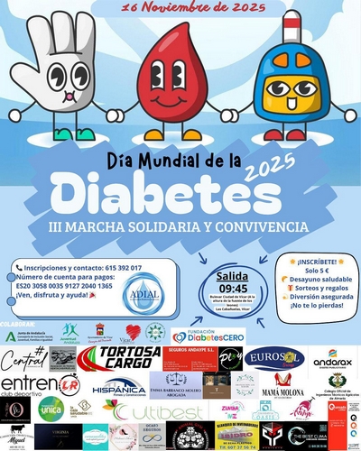 Las inscripciones para participar en la III Marcha Solidaria y Convivencia del Día Mundial de la Diabetes están disponibles a través del teléfono de contacto de ADIAL 615392017.