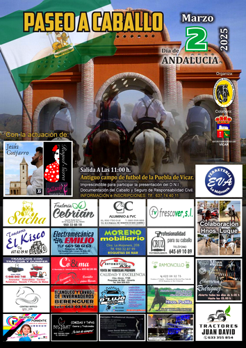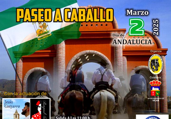 Vícar, 26 de febrero de 2025: Los amantes del caballo están de enhorabuena y es que este fin de semana llega al municipio de Vícar una actividad de convivencia diseñada para este grupo. El domingo 2 de marzo tendrá lugar el encuentro y paseo a caballo que, en el marco del Día de Andalucía, pretende reunir a jinetes, aficionados y equinos en el antiguo campo de fútbol de Puebla de Vícar.