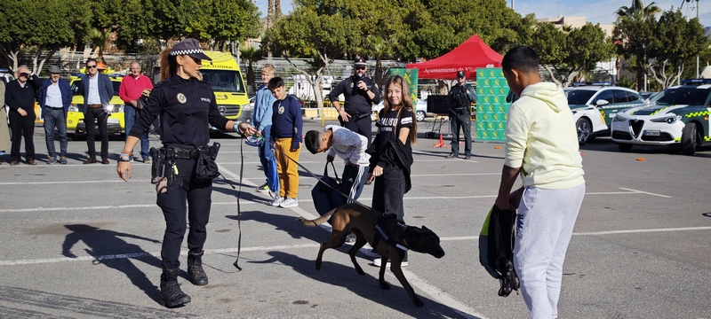 Por su parte, los agentes de Policía Local de Vícar han dado instrucciones en materia de educación vial y explicaciones sobre el material y los vehículos que utilizan en su quehacer diario. La jornada ha servido para presentar a un nuevo agente canino del cuerpo de la Policía Local de Vícar: Se trata de Sia, un joven Pastor Belga Molinoa, quien junto a Cacao, un labrador de 5 años en formación desde hace un año, entrenan para la detección de sustancias y acompañamiento policial y han protagonizado una espectacular exhibición, junto a su dueña y agente adscrita, Maribel. Las jornadas tendrán continuidad mañana por la mañana.