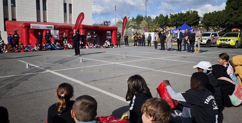 La explanada del Ayuntamiento de Vícar se ha transformado durante la mañana de hoy y la de mañana jueves en un gran parque temático educativo dirigido a los alumnos de quinto curso de los nueve centros escolares del municipio, con la Seguridad como tema central. La actividad, organizada por el Ayuntamiento de Vícar junto a la Fundación MAPFRE y la Asociación Profesional de Técnicos de Bomberos (APTB), ha contado con la colaboración del Consorcio de Bomberos de Poniente, Guardia Civil, Seprona, Ambulancias, Policía Local y Protección Civil.