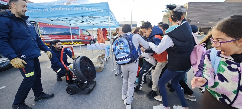 Durante la mañana de hoy se ha puesto en marcha un amplio despliegue para recibir a los niños y niñas de los centros educativos de Vícar, quienes han aprendido de una forma dinámica y divertida sobre la cultura de la seguridad y prevención. Así, se ha establecido un circuito itinerante formado por 8 estaciones entre las que se encuentra la ‘Casa de Evacuación’ de la Fundación MAPFRE. Una vivienda hinchable que plantea a los alumnos el reto de aprender a “escapar” de unas instalaciones en las que se haya originado un incendio en una situación de oscuridad absoluta. También ha formado parte de este circuito el camión de bomberos, donde se ha detallado a los niños y niñas sus diferentes elementos y modo de empleo; o el correcto uso de los Equipos de Protección Individual (EPIs) de los bomberos.