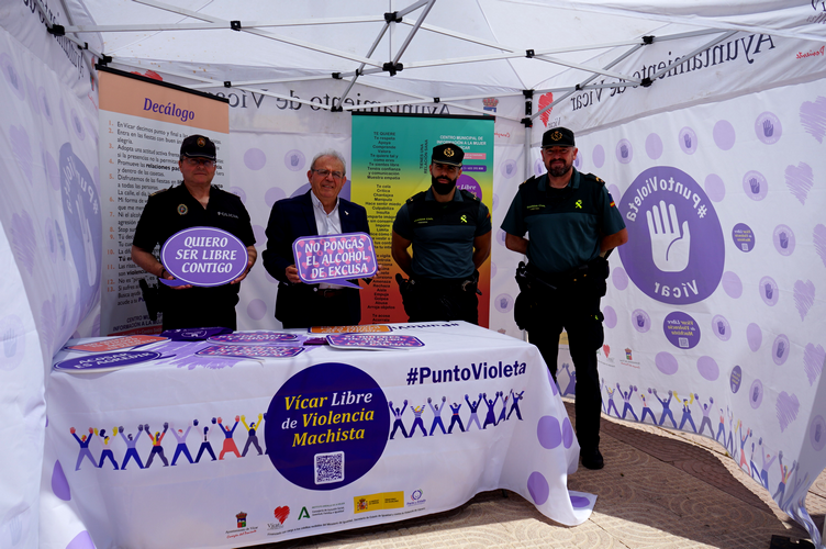 Las fiestas de Vícar contarán con un Punto Violeta para garantizar que sean encuentros festivos libres de sexismo, según ha anunciado el alcalde de Vícar, Antonio Bonilla. “Será un espacio seguro para todas aquellas mujeres que asistan a disfrutar de las actividades que se han organizado para estos festejos”, ha señalado el regidor vicario que ha recordado que ya en otros eventos celebrados en el municipio ya se contó con estos espacios, “de los que fuimos pioneros a nivel provincial”. Con esta iniciativa se pretende desde el consistorio mostrar un total rechazo a la violencia sexista, llamando la atención sobre la necesidad de que los espacios festivos sean lugares seguros, y en los que el respeto permita a las mujeres disfrutar de la fiesta libres de acoso y de agresiones sexistas. Los puntos estarán gestionados por miembros de la asociación “Protegidas”, que colabora con el Ayuntamiento ofreciendo la información necesaria a las mujeres que lo soliciten.