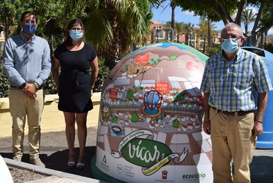 El municipio de Vícar estrena desde este lunes una decena de contenedores para el reciclaje de envases de vidrio con un diseño exclusivo de la localidad tras alzarse como una de las localidades ganadoras del ‘Reto Mapamundi’. Para la presentación de estos diez contenedores vinilados se ha elegido uno de los ubicados en Puebla de Vícar, y ha corrido a cargo del alcalde vicario Antonio Bonilla, la concejala de Medo Ambiente, Luz María Fernández, y por el técnico responsable de la Gerencia de Ecovidrio para Andalucía Oriental y Cádiz, Iván González. Vícar se ha hecho acreedora de estos contenedores por su implicación en la citada campaña, puesta en marcha por la Junta de Andalucía, la Federación Andaluza de Municipios y Provincias (FAMP) y Ecovidrio.