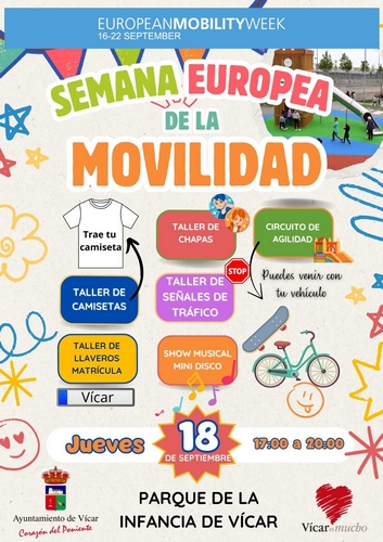 Además, en esta ocasión, desde el municipio se promueven actividades especialmente dirigidas a la infancia y las familias con una gran tarde de talleres el próximo jueves 18. A partir de las 17.00h el Parque de la Infancia de Vícar se llenará de vida y creatividad con talleres como el de camisetas, llaveros de matrícula, chapas, señales de tráfico, show musical y circuito de agilidad. Por otra parte, el fomento de la actividad física y la movilidad sostenible continuará en la jornada del viernes 19 con un taller de zumba y juegos populares. La fiesta, con la colaboración de Mar de Zumba y 3Duendes, se desarrollará de 18.00 a 20.00h en La Envía.