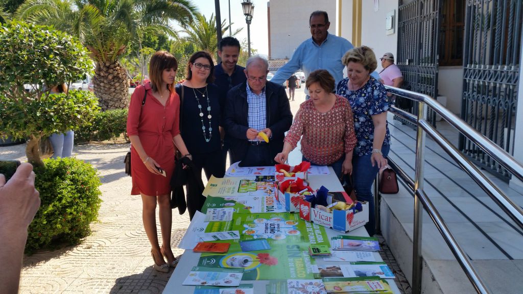 El propio Antonio Bonilla ha participado de forma activa en esta actividad, junto algunos de los concejales, visitando el punto informativo instalado a la entrada del Ayuntamiento y repartiendo entre los vecinos material divulgativo sobre la prevención y deshabituación tabáquica. El alcalde también ha insistido en los peligros que para la salud representa el consumo del tabaco, “debemos tener en cuenta que cada año se diagnostican en España unos 25.000 casos de cáncer de pulmón, y que nueve de cada diez de éstos casos se deben al tabaquismo”. Esta campaña informativa y de sensibilización sobre los efectos nocivos que para la salud tiene el tabaco,está enmarcada dentro del programa de Prevención comunitaria ‘Vícar ante las drogas’ de la Concejalía de Servicios Sociales junto con la Concejalía de Salud a través del programa RELAS e incluida dentro de las actividades del Mes de la Salud, y que con la actividad ‘Un millón de pasos’ llega mañana a su final.