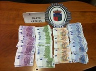 Como consecuencia de la detención de A. M. y el posterior cacheo de los agentes, en un bolso que portaba el detenido se encontró un fajo de billetes de 500, 100, 50 y 20 euros, un total de 38.470 euros en dinero falso, por lo que fue detenido y trasladado a la Jefatura de la Policia Local, donde permaneció hasta su puesta a disposición judicial. Al parecer y según las manifestaciones de los agentes intervinientes en la detención, los billetes falsos incauitados podrían iri n destinados a la compra o venta de sustancias prohibidas, extremo este que no pudo ser concretado por el detenido, si bien el hecho de que fuera perseguido por el otro individuo podría indicar que hubiera sido descubierto el engaño.
