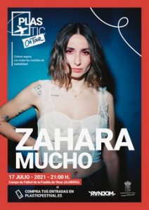 El PlasticOn Tour, es un ciclo de conciertos que se realizará en diferentes espacios del Poniente almeriense, con propuestas que van desde artistas emergentes, grandes talentos con un gran potencial a propuestas de artistas con mayor trayectoria y por el que han pasado artistas como Nixon, Me & The Reptiles, Viva Suecia, Barra Brava, La Casa Azul o Fuel Fandango. Diversos estilos y formatos adaptados a los aforos, y con medidas de seguridad que inician este año su recorrido en Vícar con la presencia de Zahara, en su gira de presentación de su disco ‘Puta’ y de Mucho, con su ‘¿Hay alguien en casa?’, uno de los mejores discos de 2019. Zahara es una artista polifacética, con nueve discos en el mercado, pero que compagina su exitosa carrera musical con el teatro o la escritura. Completa el cartel Mucho, un grupo de pop cósmico y rock cremoso, herederos de los desaparecidos The Sunday Drivers, con un estilo sencillo y directo.