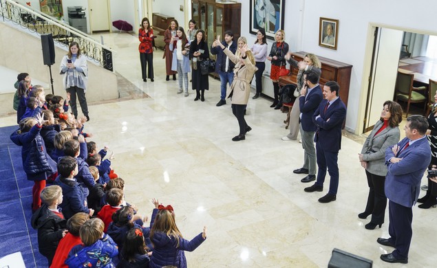 La Diputación Provincial de Almería ha recibido este viernes a cerca de más de 30 alumnos de Educación Infantil del Colegio Altaduna. Los escolares han disfrutado del Belén Navideño y han cantado villancicos al presidente de la Diputación, Javier A. García, así como a los empleados, familiares y diputados que se han dado cita en el hall de la Sala de Comisiones.