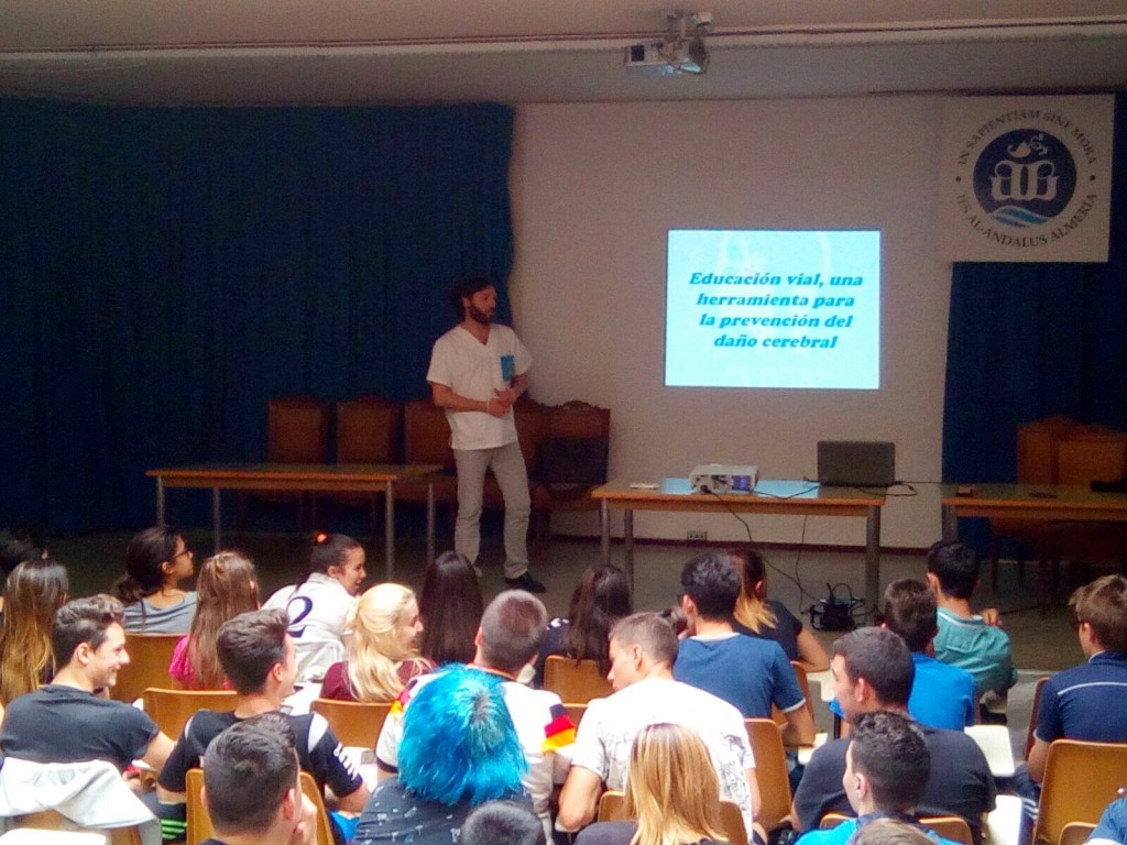 Asociación Almeriense de Daño Cerebral, VIVIR, entidad miembro de FAAM, Federación Almeriense de Asociaciones de Personas con Discapacidad conciencia a más de un centenar de jóvenes de Secundaria de los IES Al-Ándalus y Albaida sobre los peligros de mantener inadecuadas conductas al volante, las cuales provocan accidentes de tráfico y causan la aparición de lesiones cerebrales que podrían evitarse.