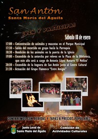 En el caso de Santa María del Águila, el intenso programa de actividades, organizado tanto por la Junta Local como por la Comisión de Actividades Culturales, se iniciará a las cinco de la tarde con la concentración de animales y mascotas en el Parque Municipal. A continuación, se realizará un recorrido en grupo hasta la Iglesia en donde, sobre las seis y media de la tarde, se procederá a la bendición de todos ellos.